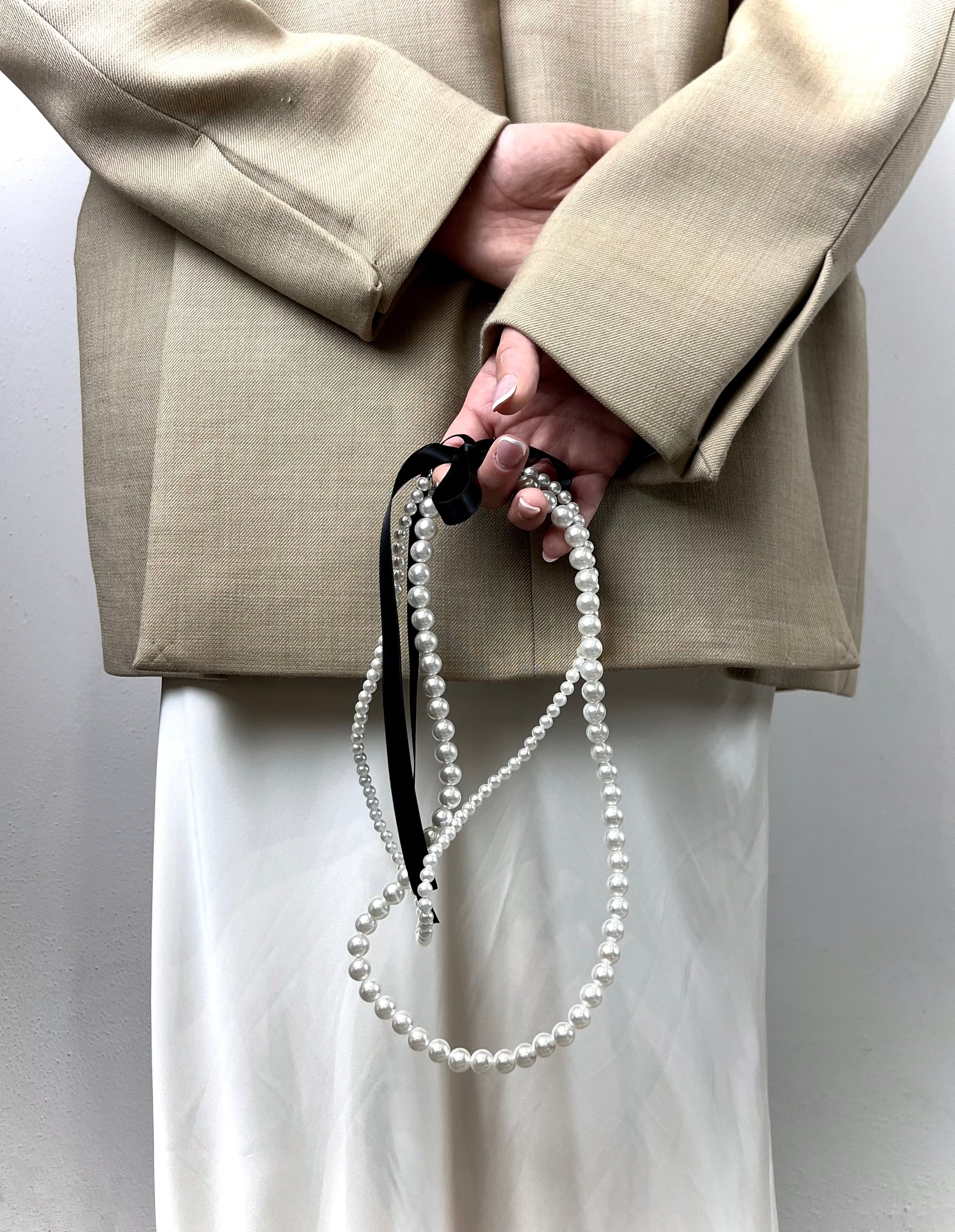 Collana a due giri di perle bianche con filo rigido da modellare