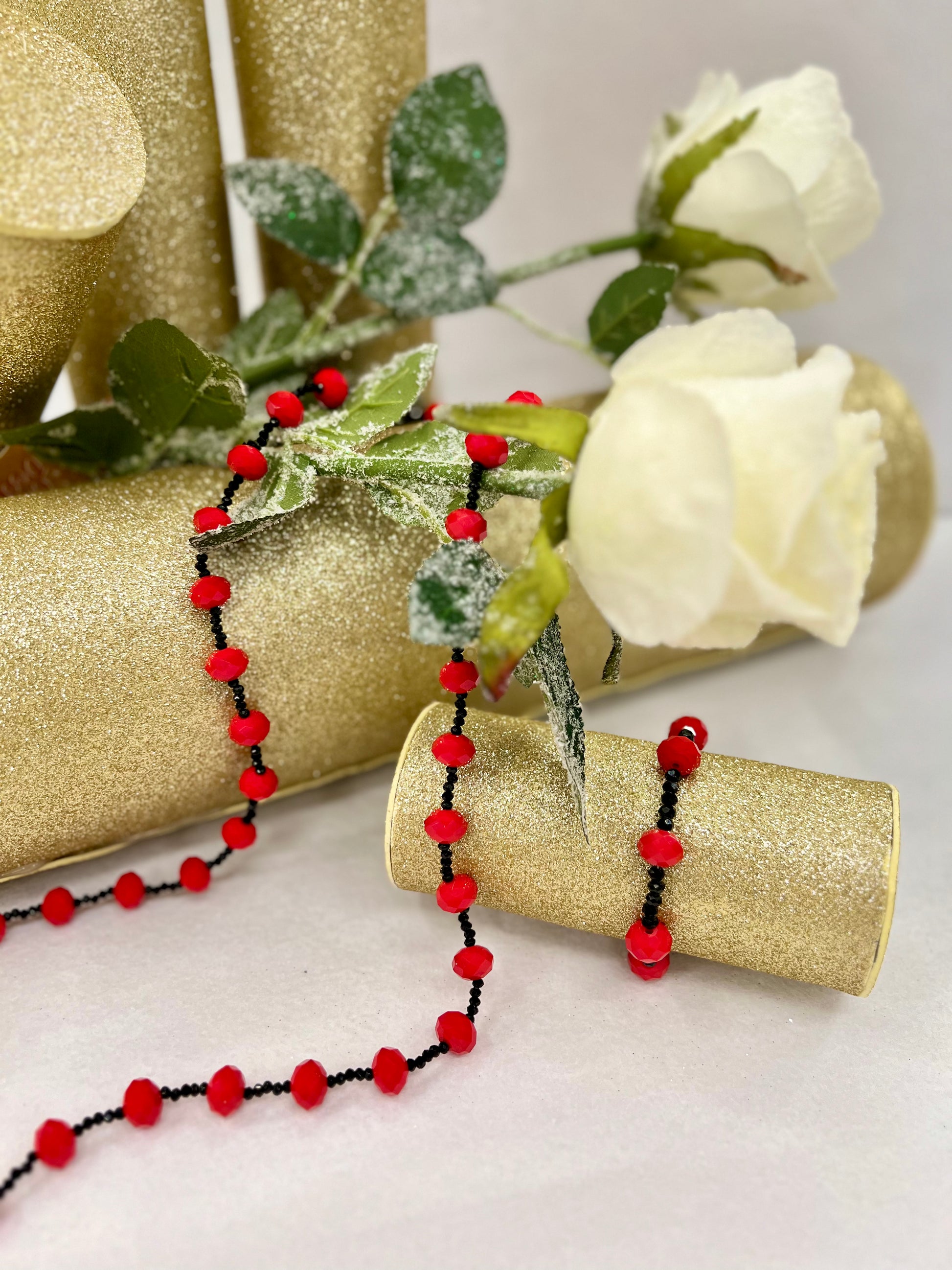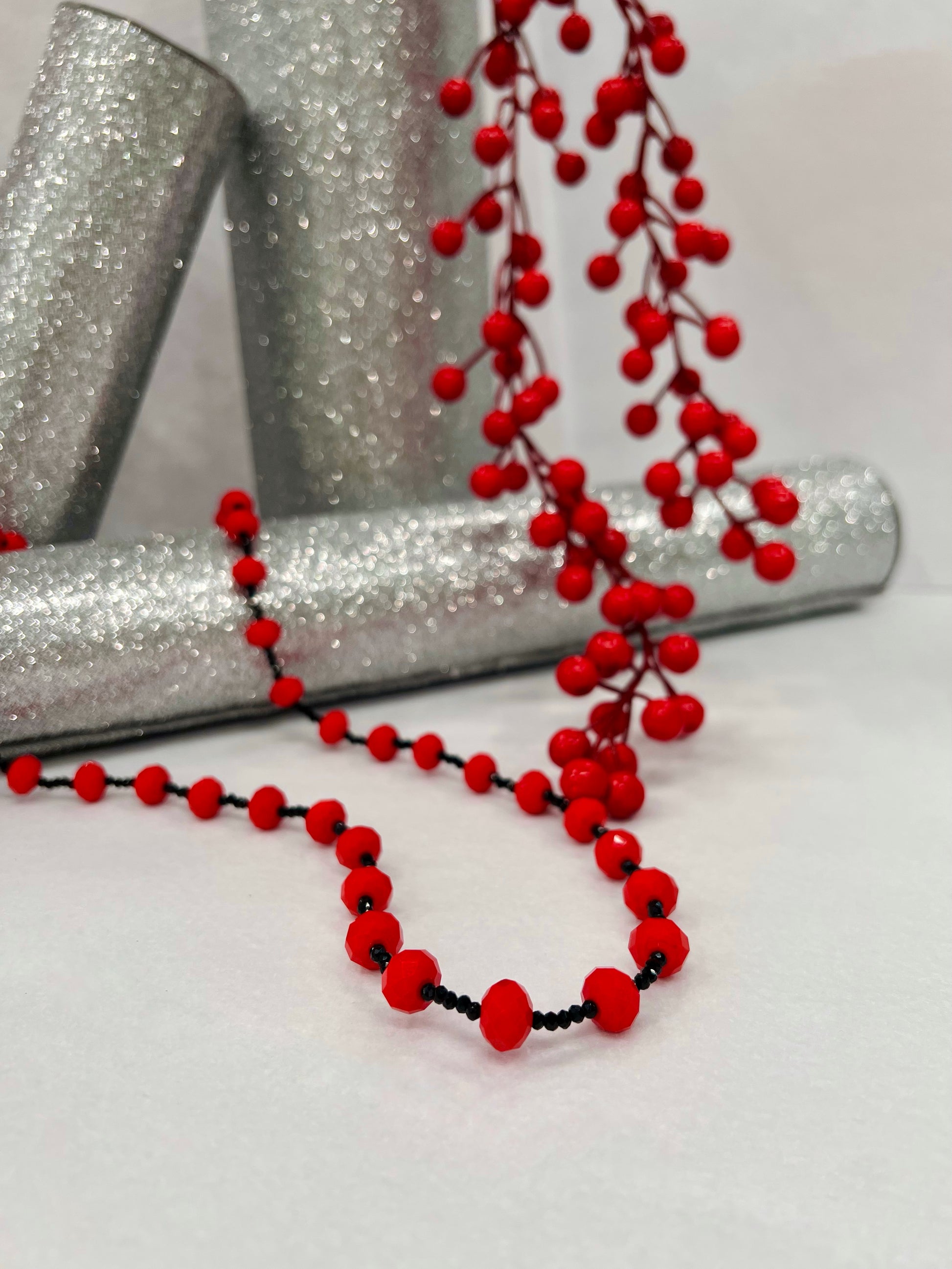 Collana di cristalli rossi e neri.