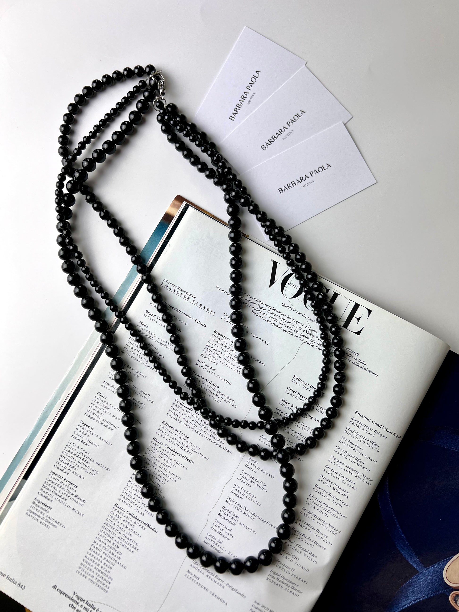 Collana a tre giri di perle nere