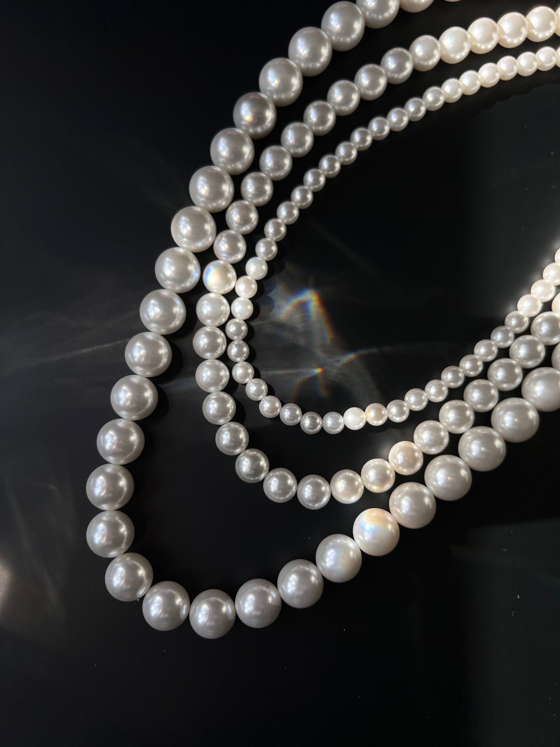 Collana a tre giri di perle butterfly di dimensioni diverse